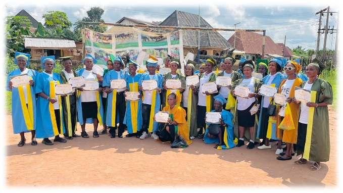 The graduation event, organized by the POWER Foundation in partnership with SLNI Nigeria, took place from 12:30 PM to 3:30 PM and was a well-coordinated success. It featured opening prayers, speeches, student presentations, and a certificate ceremony recognizing 34 graduates (14 men and 20 women). Community mobilization, careful planning, and logistical coordination ensured smooth execution. The event ended with refreshments and group photos, leaving attendees with a sense of pride and appreciation. The Foundation’s impact and continued support were highly praised by both students and community leaders.